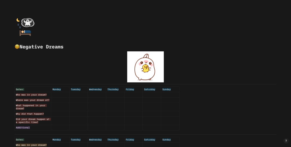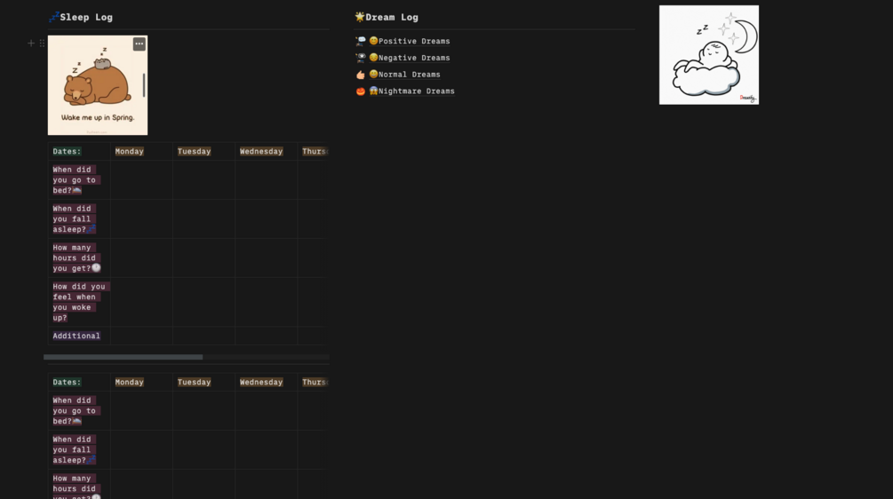 Notion Sleep and Dream Diary